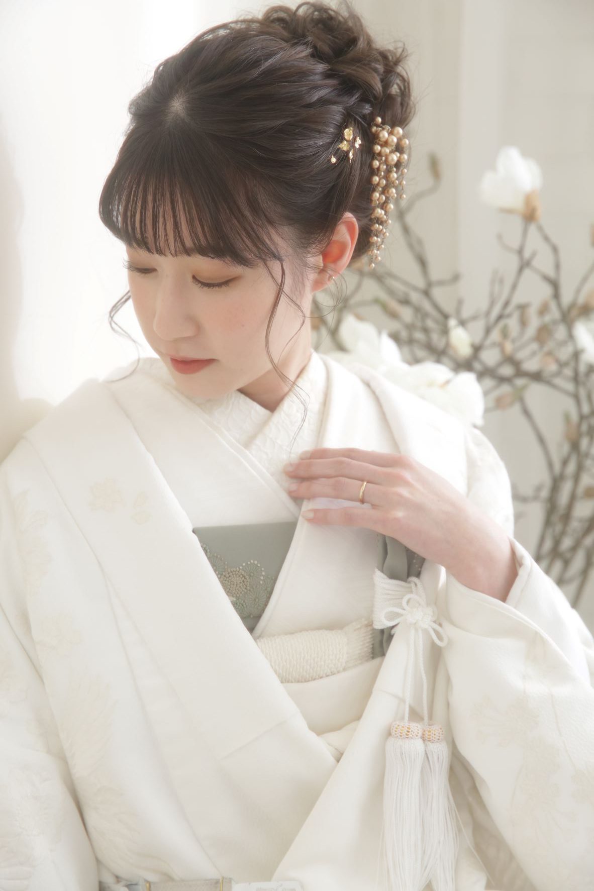 10時にご来店されたお客様のヘアセットとメイクに入らせて頂いて、お着換えをお手伝いして撮影のアシスタントを日々行っています。予約状況によって成人と卒業のカウンセリングに入ったりもします。現在、婚礼のカウンセリングを受けられるように勉強をしているので、今後婚礼のカウンセリングにも入る予定です。