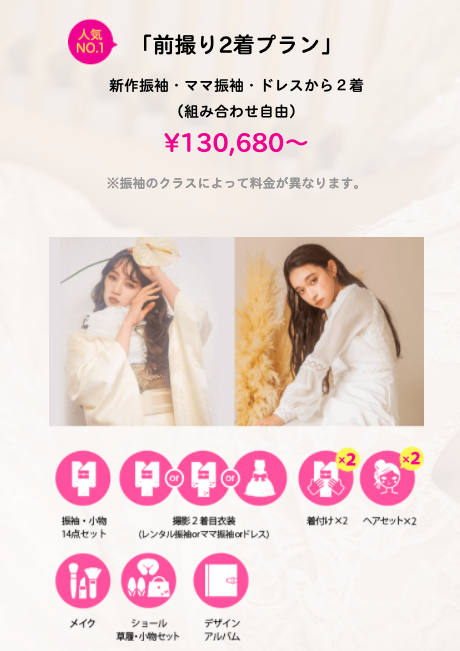 当日レンタルと前撮りが一緒になったプランもございますので、お気軽にお問い合わせください!