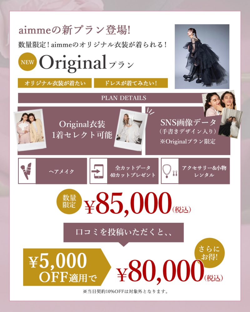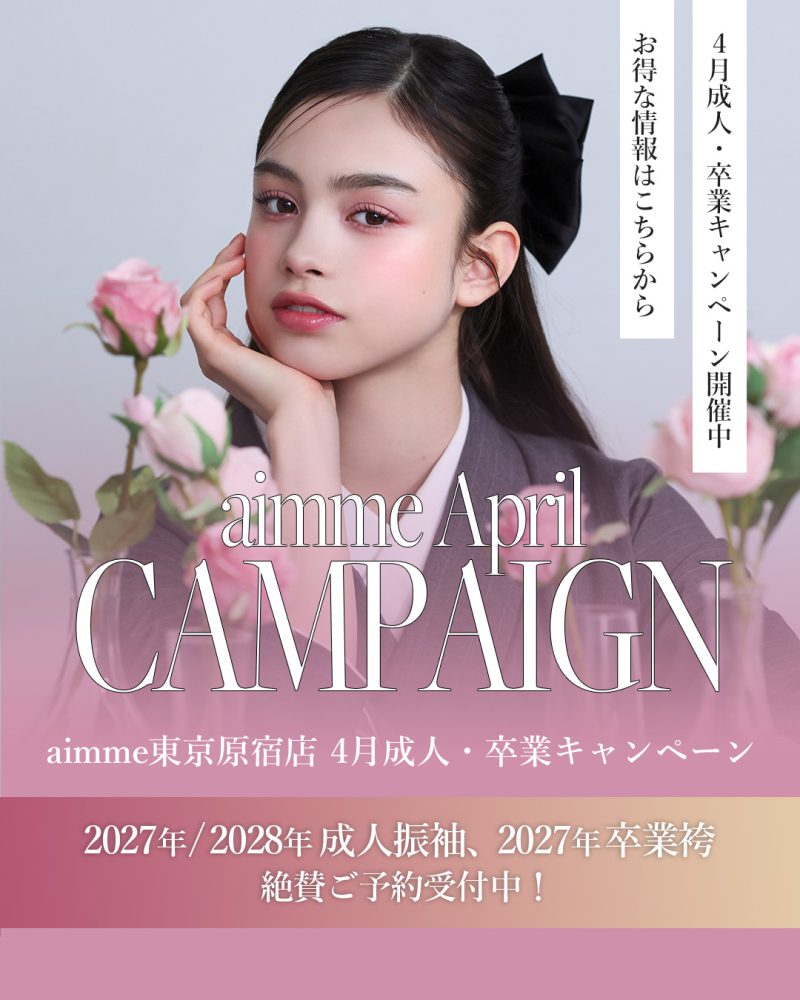 aimme原宿店人気No.1の「振袖レンタル&撮影プラン」をご契約で、